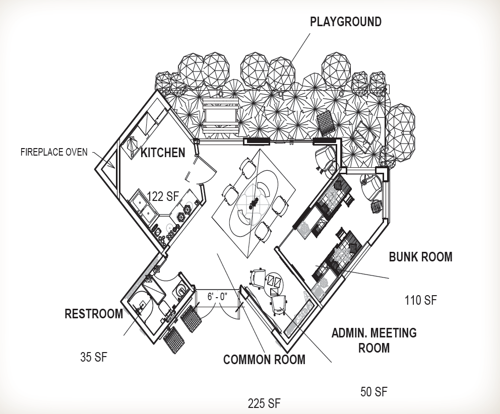 The targeted user group is Iranian women, children, and elderly. The space will fulfill the adult’s needs of having a phone to call relatives, storage for personal items, help with documentation, kitchen for cooking traditional food, shower, soft seating for recovery from walking, and an area for retaining pack animals. The children will require an area for imaginary play, a resting area, positive distractions, enriching and stimulating colors, and tools to access different parts of the space.